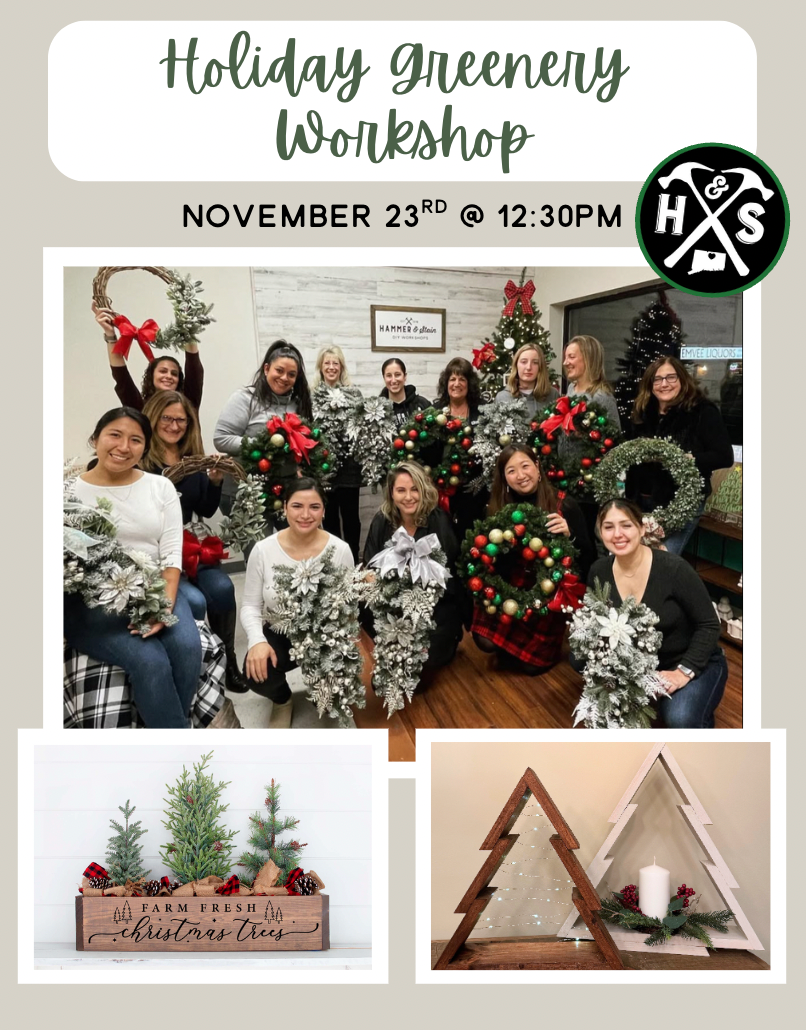 Join us for a cozy, hands-on holiday workshop November 23rd @ 12:30pm where you’ll craft a beautiful piece of décor that’s all your own. Choose from a classic holiday wreath, a centerpiece box filled with greenery, or a wooden Christmas tree adorned with festive touches. We’ll have a wide variety of seasonal greenery and decorative picks, ribbons, and fairy lights so you can style your piece to match your home — from rustic and natural to merry and bright. No experience needed — just bring your holiday spirit! 🌿🎄 All materials and guidance are provided. Greenery and pics subject to availability.
